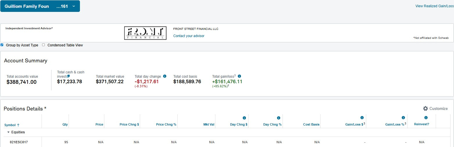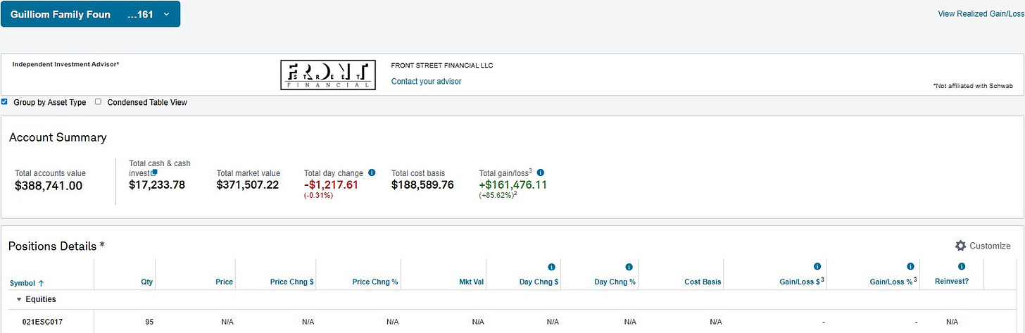 Most Recent Meeting DocsAnthony Blair, April 2026Guilliom Family FoundationMar 27, 2026ShareGuilliom Family Foundation HomepageMar 26Read full storyMemo: Current portfolio snapshot, March 2026GFF Investment Portfolio Mar 27 2026GFF Nov 2025 Meeting PackageInvestment Portfolio summary package Nov 2025GFF Nov 2025 Meeting NotesGuilliom Family Foundation HomepageMar 26Read full storyPreviousNext